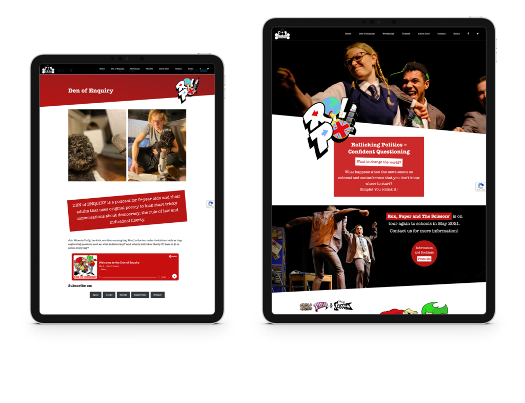 It was a real pleasure to create this website for Miranda. She is full of energy and passion and that, of course, is contagious! Miranda set up Gone to the Dogs Productions with the aim to bring the five PSHCE British Values – rule of law, democracy, mutual respect, tolerance and individual liberty – alive through theatre performances, arts-based school workshops and podcasts